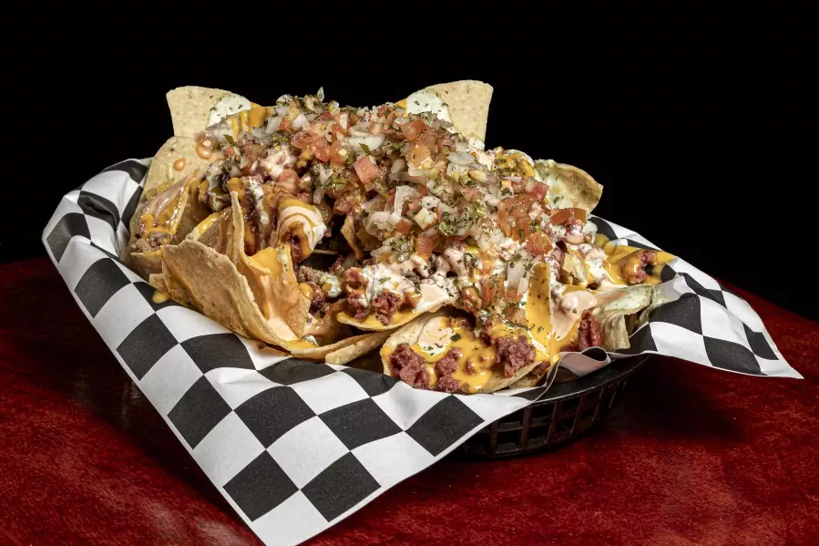 Totopos de maiz servidos con carne, pollo o mixto; bañados en queso, salsa siranesa, chimimayo y pico de gallo.
