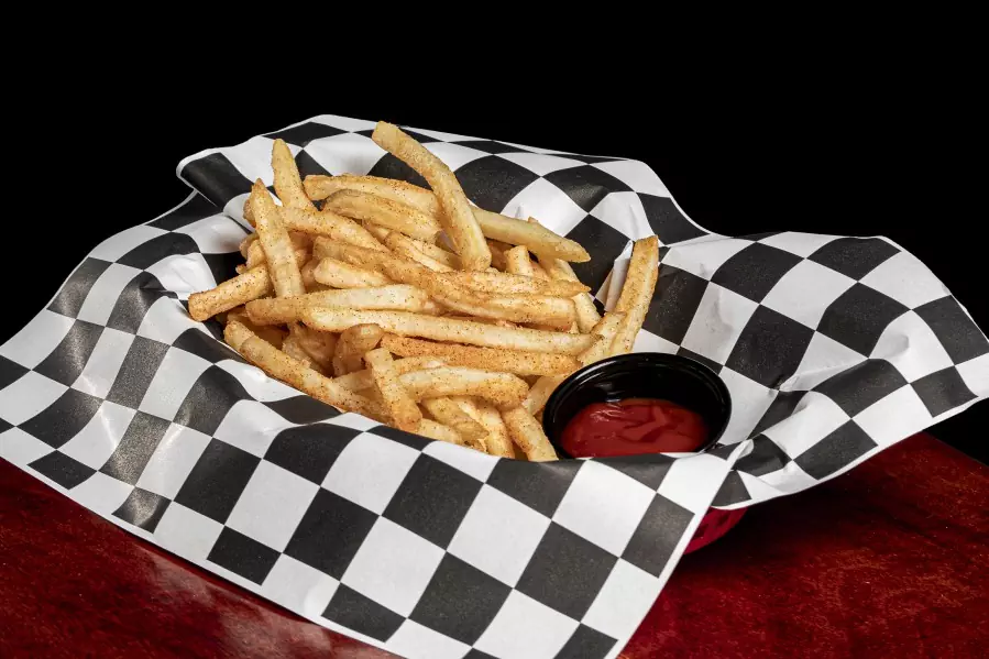 Clásicas papas fritas sazonadas con la mezcla especial de la casa acompañadas con ketchup.