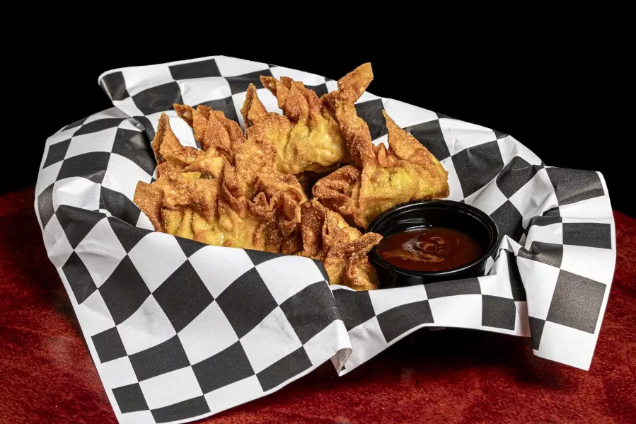 Masa de wantón rellena de puerco con vegetales fritos, acompañados con salsa agridulce (5)